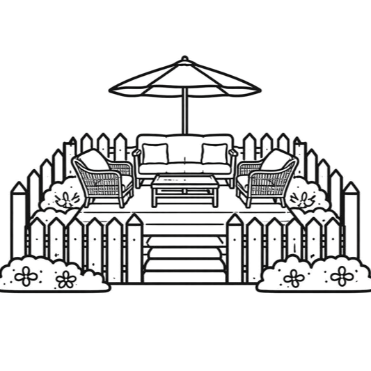 Domek jest ogrodzony z trzech stron szczelnym płotem, a od frontu posiada metalową bramę i przęsła dodatkowo zabezpieczone siatką.